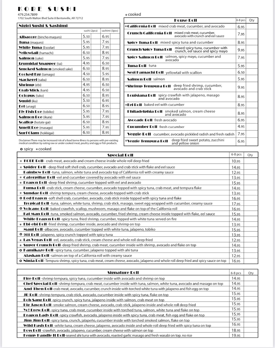 Welcome to Kobe Sushi, a hidden gem nestled in the heart of Bentonville, Arkansas. Located at 1702 S Walton Blvd #8, this cozy sushi spot promises a delightful culinary journey. With a commitment to quality and a menu that showcases the art of sushi-making, Kobe Sushi is quickly becoming a favorite among locals and visitors alike.
